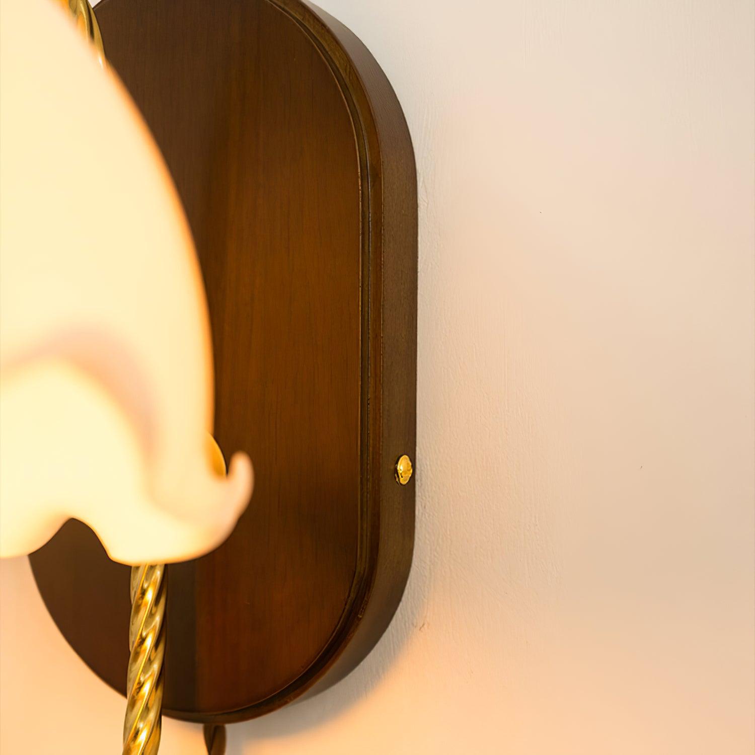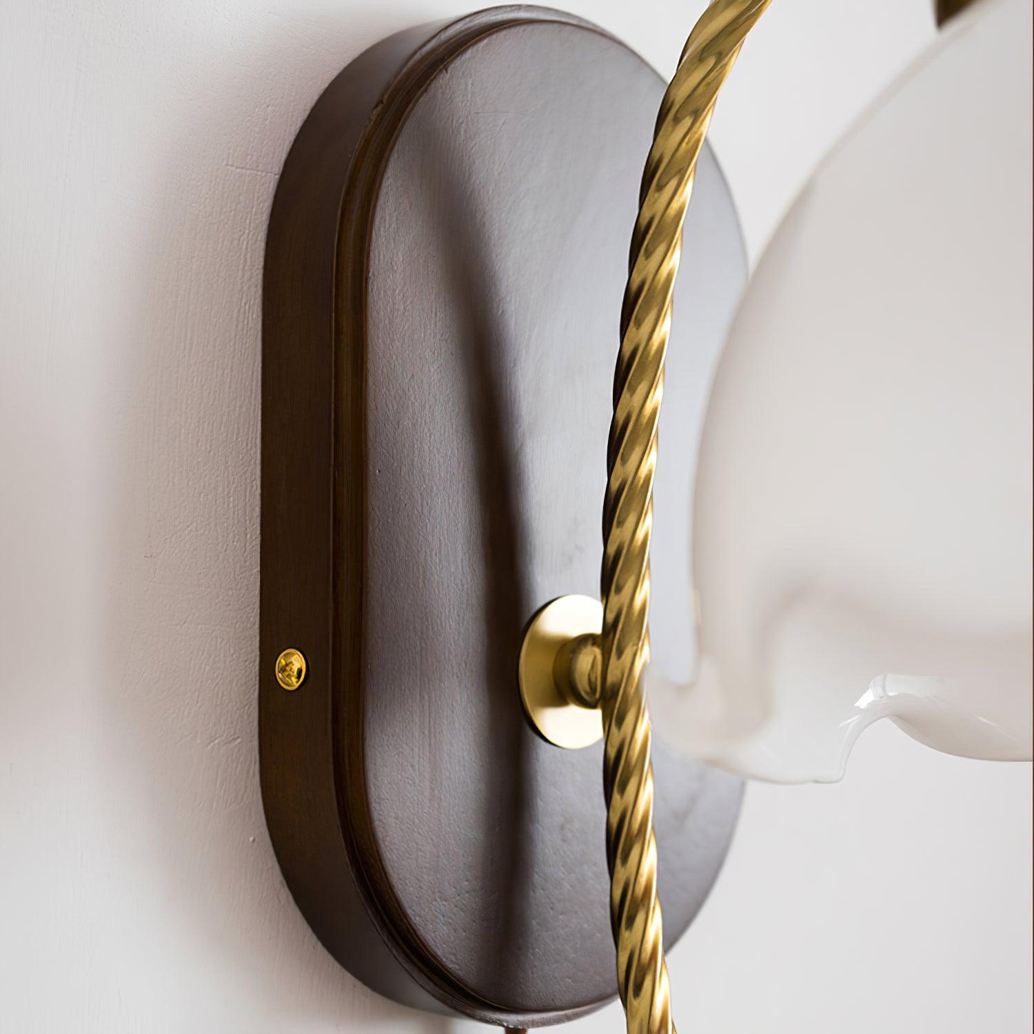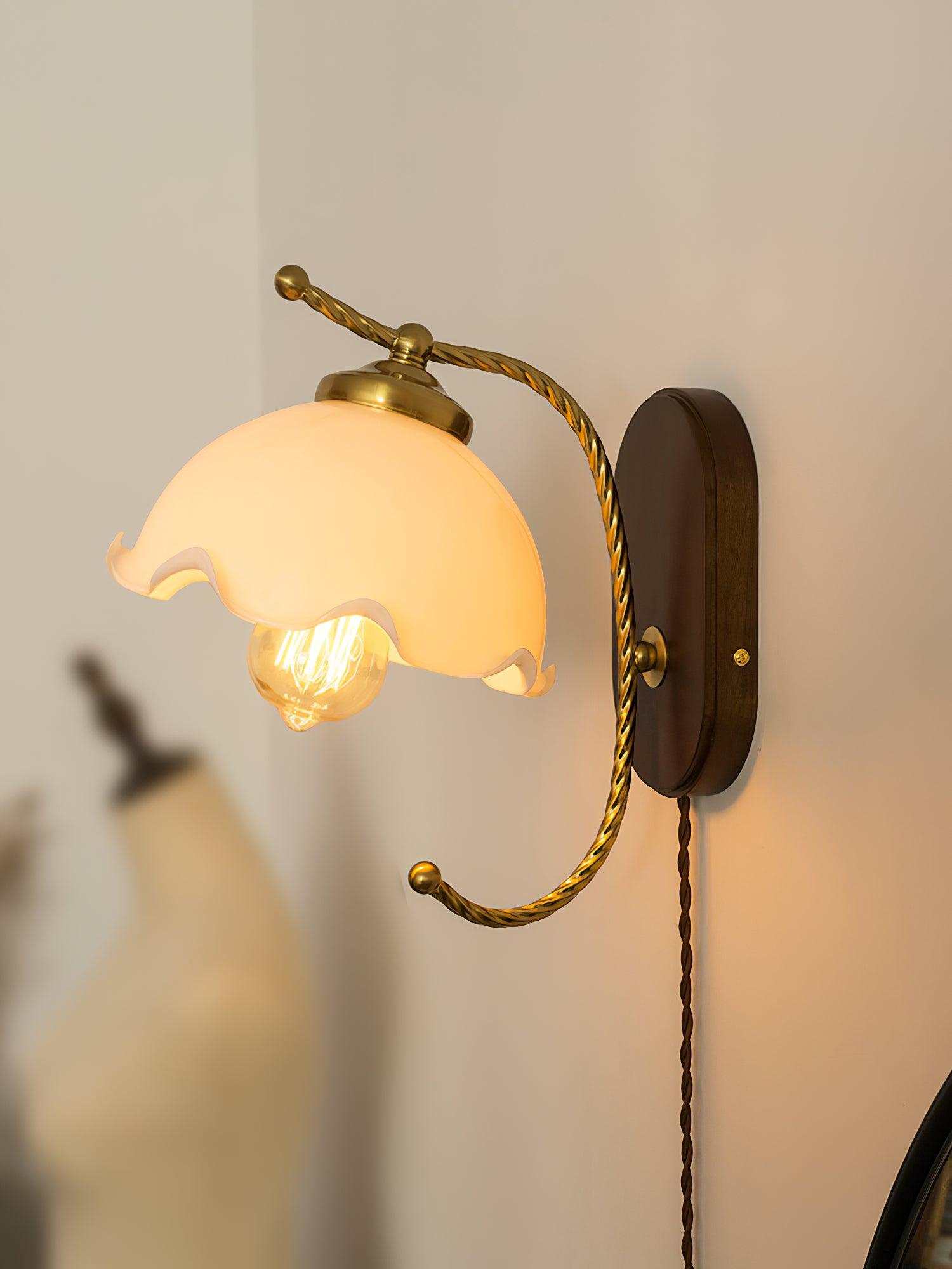 A modern update on the classic wall lamp, this is an eye-catching lighting centerpiece sure to raise admiration. The wall lamp features a striking flower lampshade. lamp body curving out downwards, this wall lamp is a stylish choice for a living room or living space.