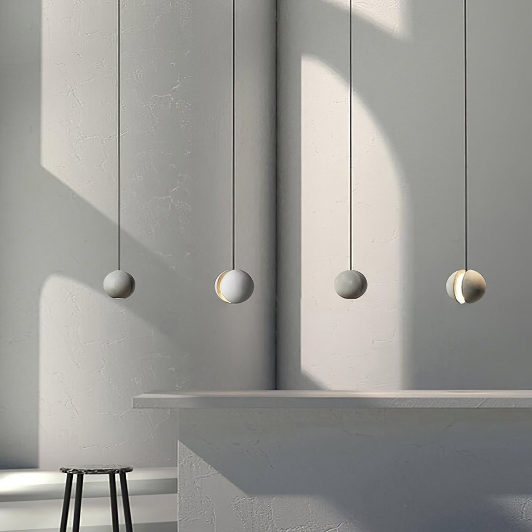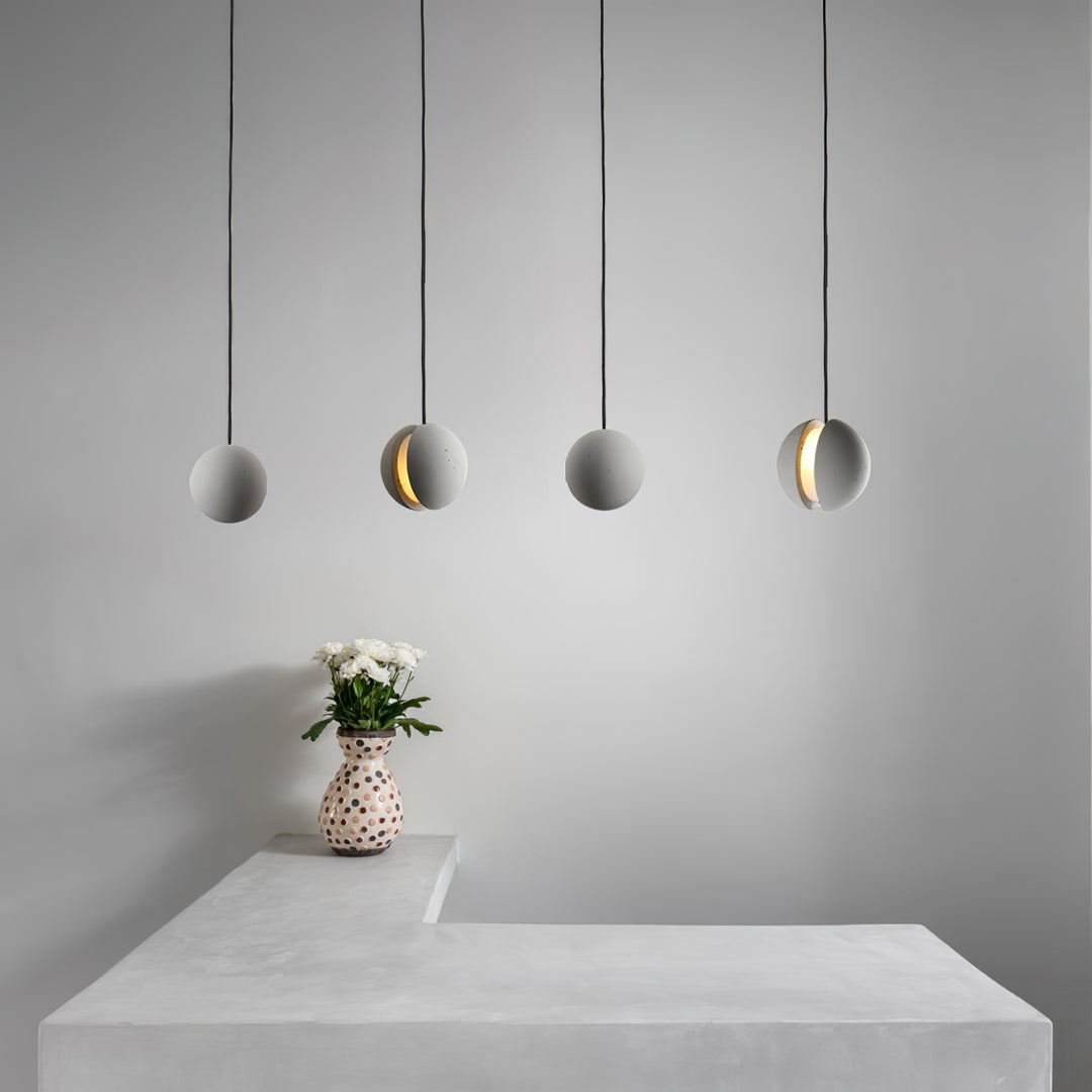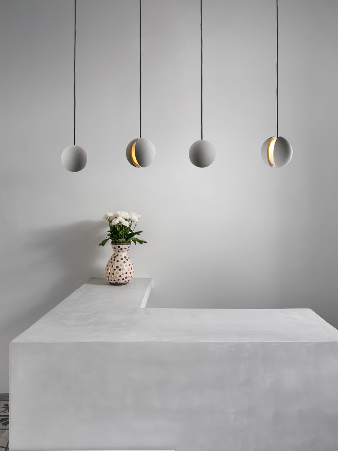 The Moon Concrete Pendant Lamp combines modern design with industrial materials. Its black aluminum and concrete body with LED light source creates a truly unique lighting experience. Create a distinctive atmosphere for any interior with its minimalist yet eye-catching design.