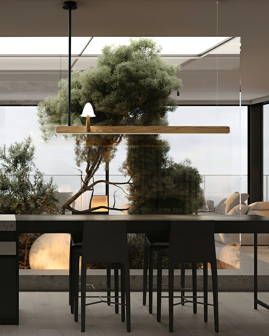 The Mushroom Beam Chandelier seamlessly combines natural elements with minimalist design. The wooden beam provides a sleek base, while the small mushroom-shaped lampshade adds a touch of whimsy. With a soft white glow, this lamp creates a warm and cozy atmosphere, making it perfect for any space in your home. Its unique blend of nature-inspired and modern design adds a playful personality to any room.