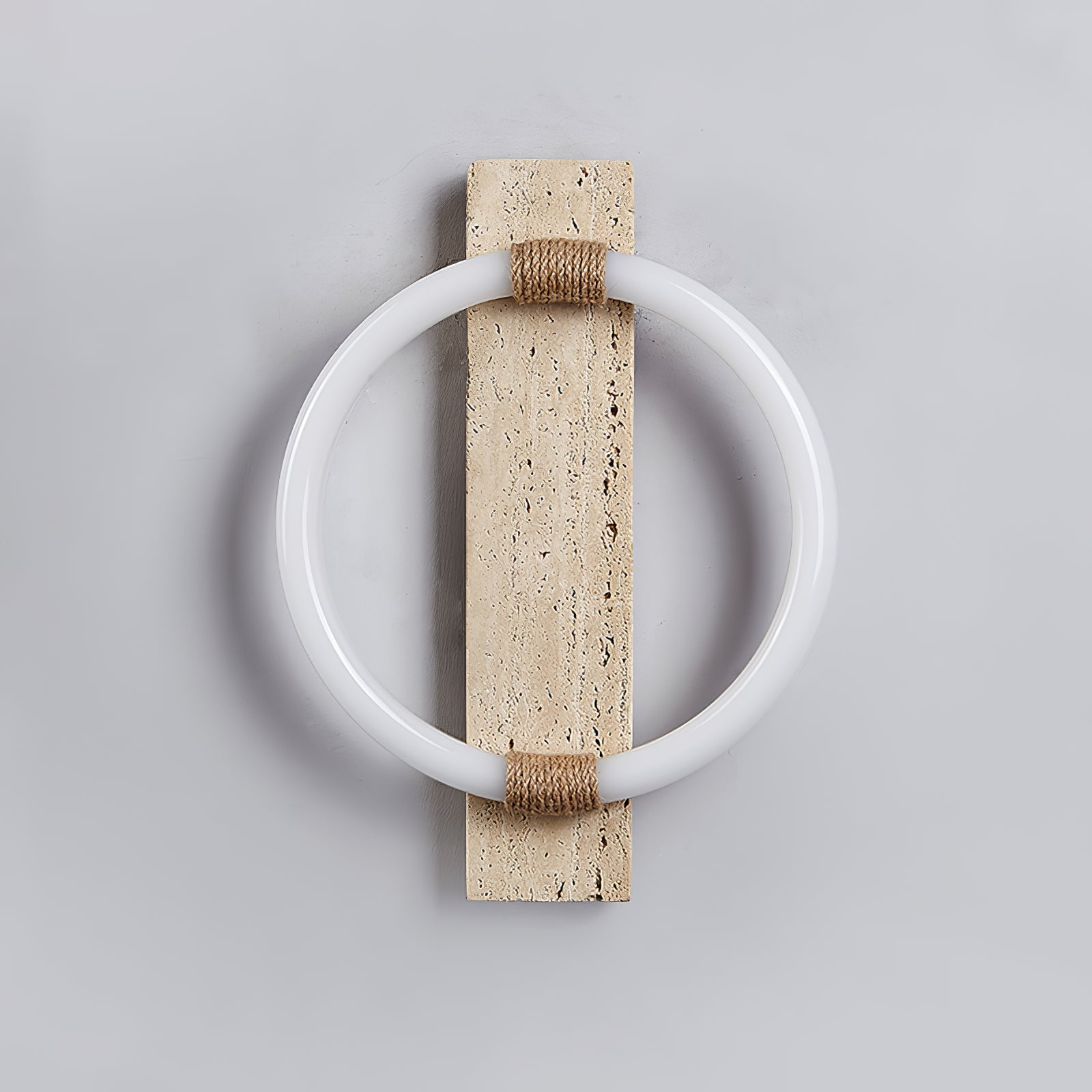 The Vakkerlight Niva Sconce combines elemental stone with a glowing ring of light in a perfectly balanced design. A hand-finished travertine base anchors the luminous circle, secured with wrapped cord detailing. Sculptural, serene, and effortlessly modern.