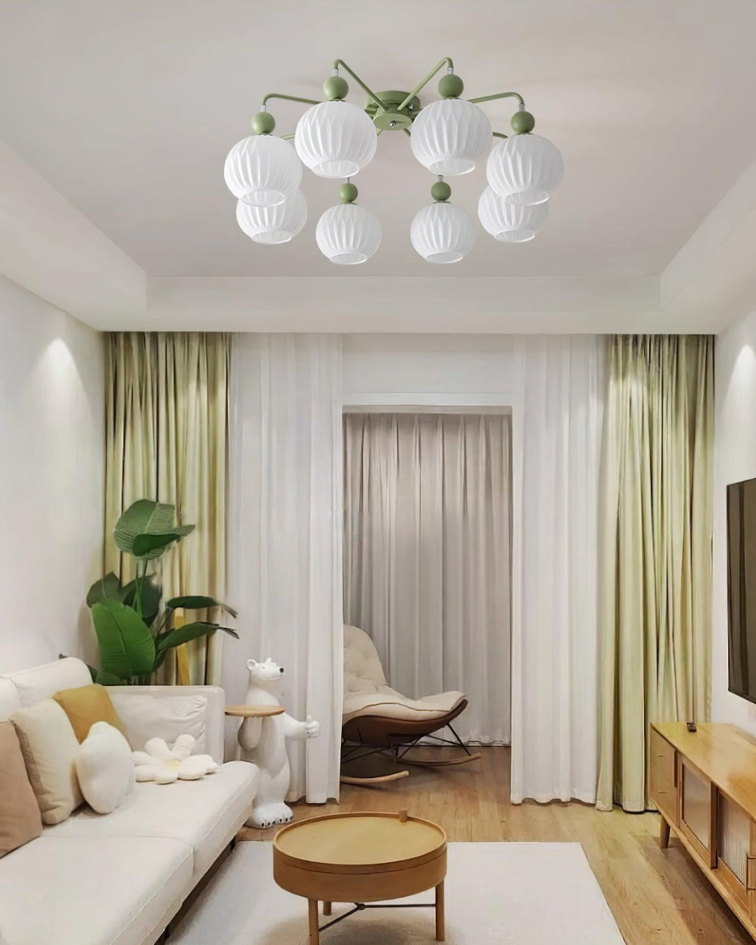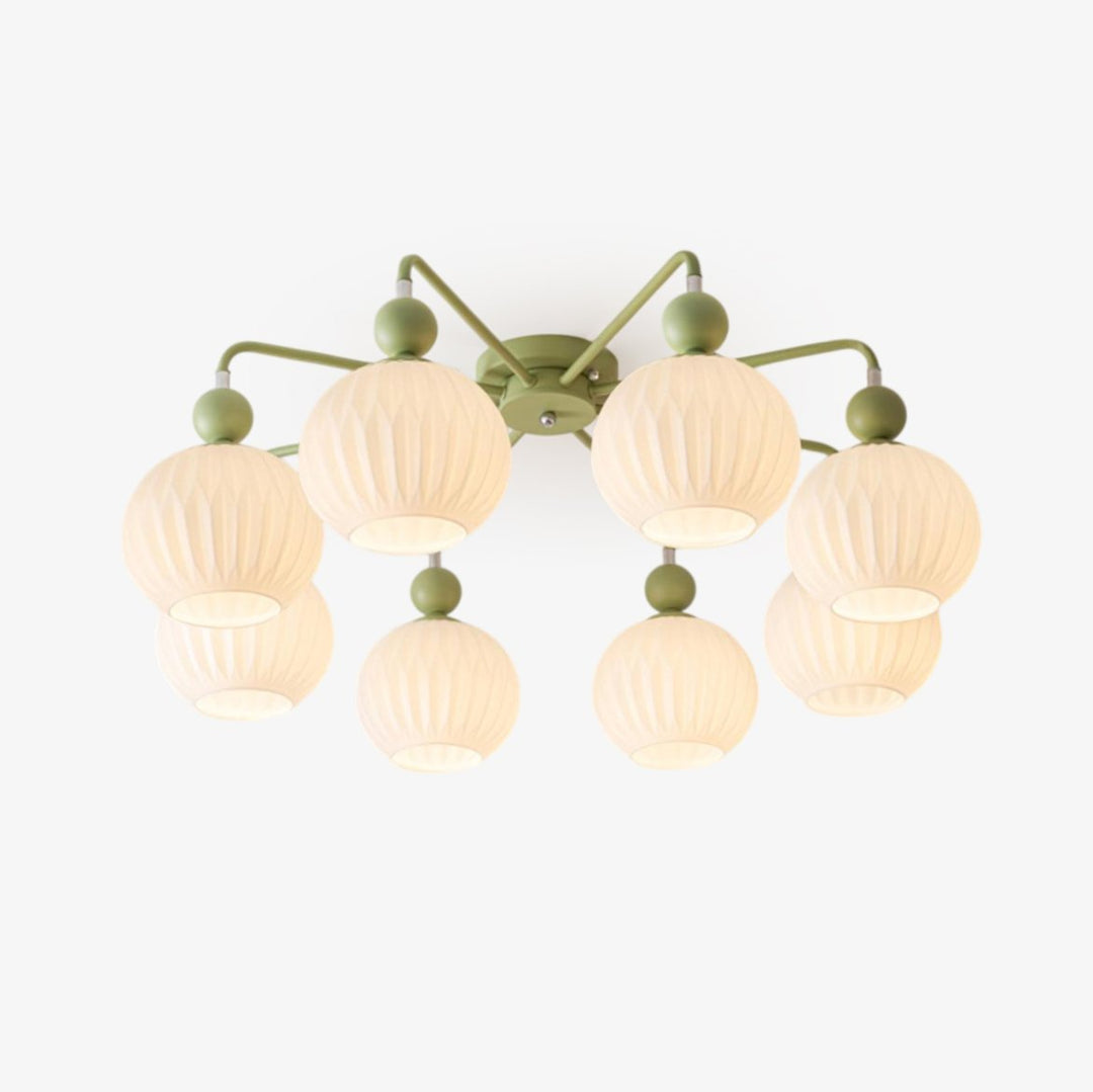 Introducing the Renee Ceiling Light – a statement piece that adds timeless luxury to any room. Its premium materials and matcha green hue create an exclusive feel. This unique pumpkin-shaped light will elevate your home decor and add a touch of sophistication and style.