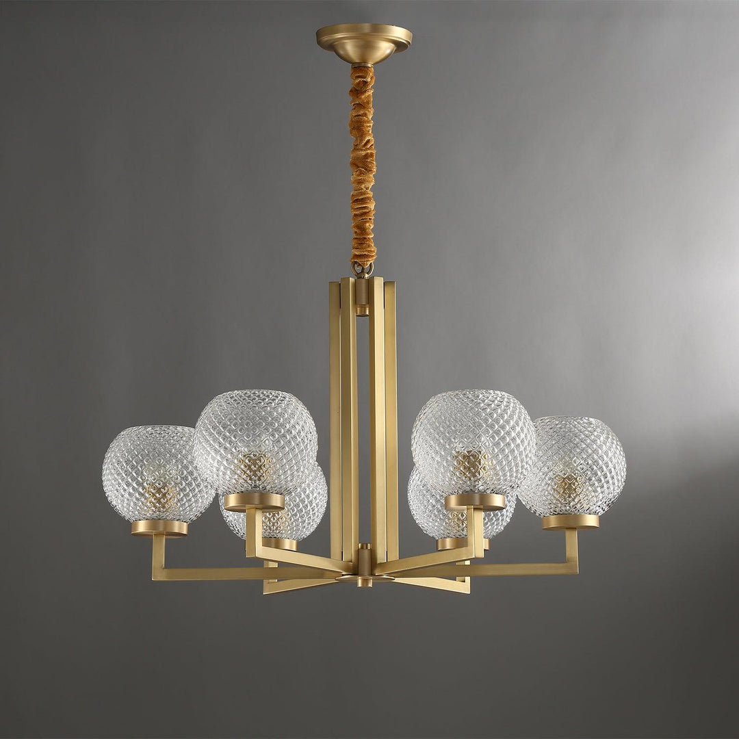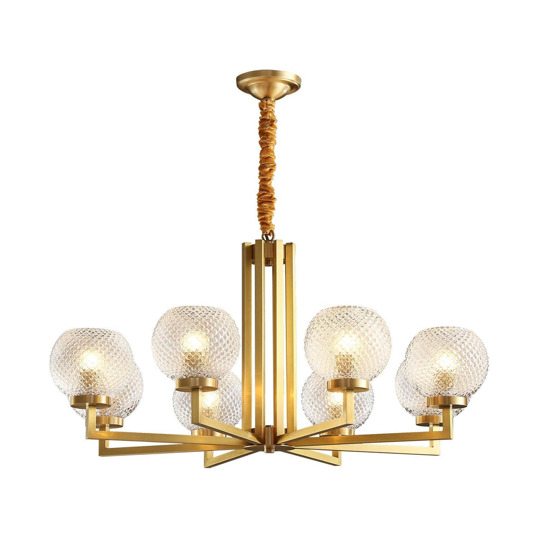 Ribbed Glass Brass Chandelier