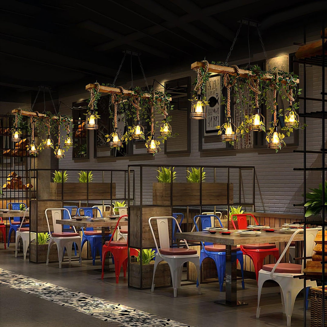 Material: Metal, Hemp Rope, Wood, Artificial Green Plants