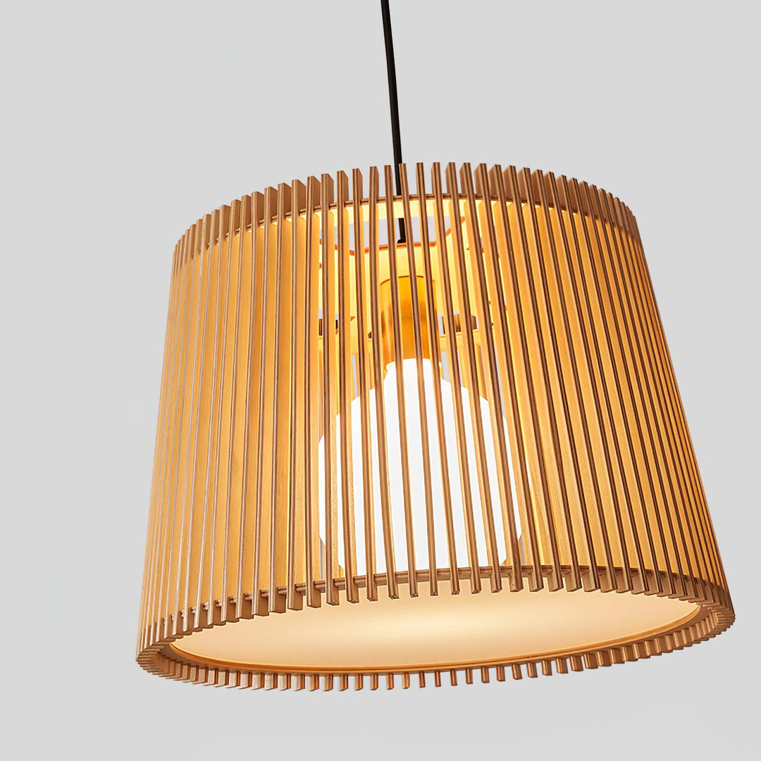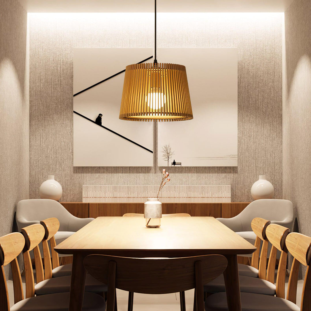 The Samantha lamp Once switched on, the wood slats create a fascinating play of light and shadow on the ceiling. The pendant light blends seamlessly with the current nature and boho trends, creating an appealing atmosphere with its natural materials and providing cosy lighting for the living room or dining room.