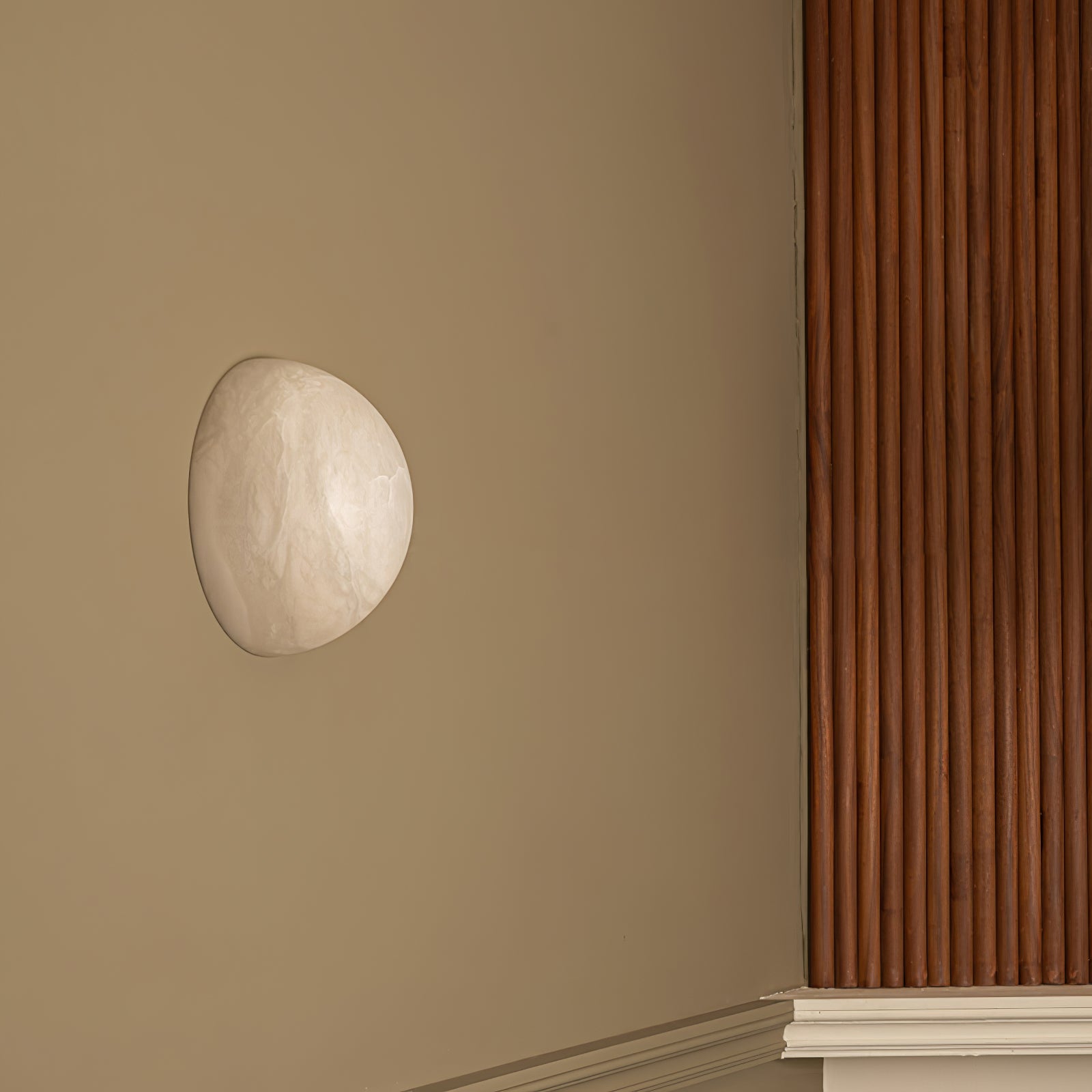 The Snowflake Alabaster Wall Sconce draws inspiration from the delicate beauty of snowflakes and the intricate patterns found in alabaster stone. Its smooth, pebble-like form with natural marbling evokes a sense of tranquility and elegance, perfect for adding a serene touch to any modern interior.