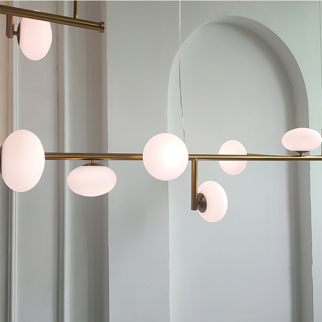 Inspired by the elegant balance of celestial spheres, the Sphere Balance Chandelier features a series of spherical lights arranged on a sleek brass frame. This sophisticated fixture brings a sense of modern elegance and cosmic harmony to any space. Its unique, asymmetrical design adds visual interest, making it an ideal focal point for dining rooms or living areas. The chandelier blends artistry and functionality, enhancing any interior with its captivating presence.