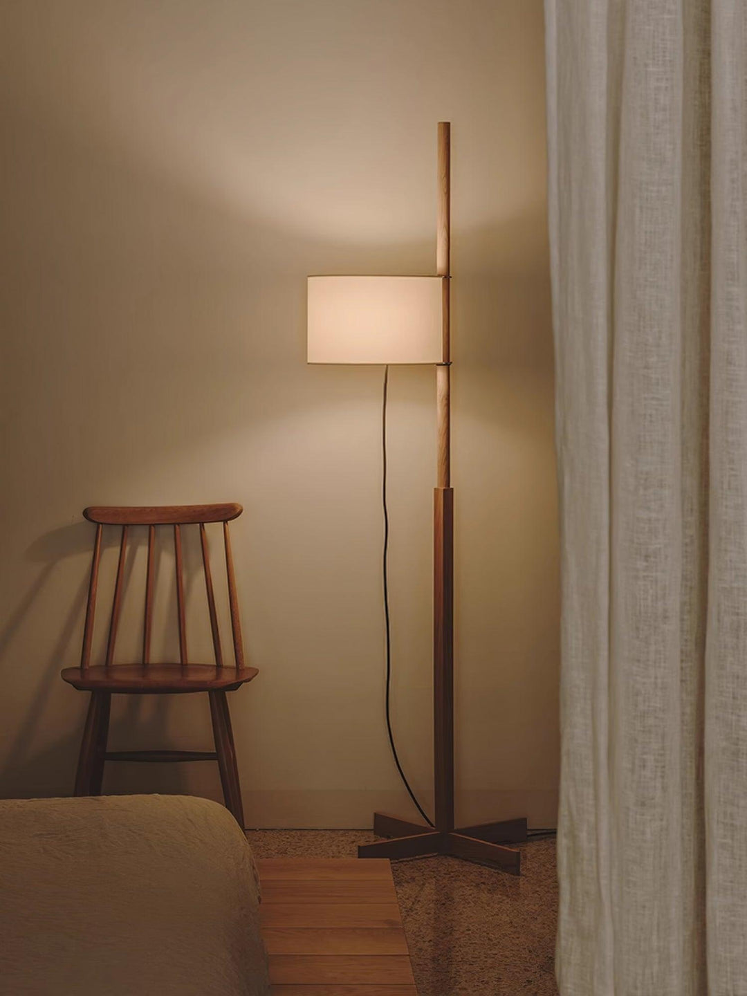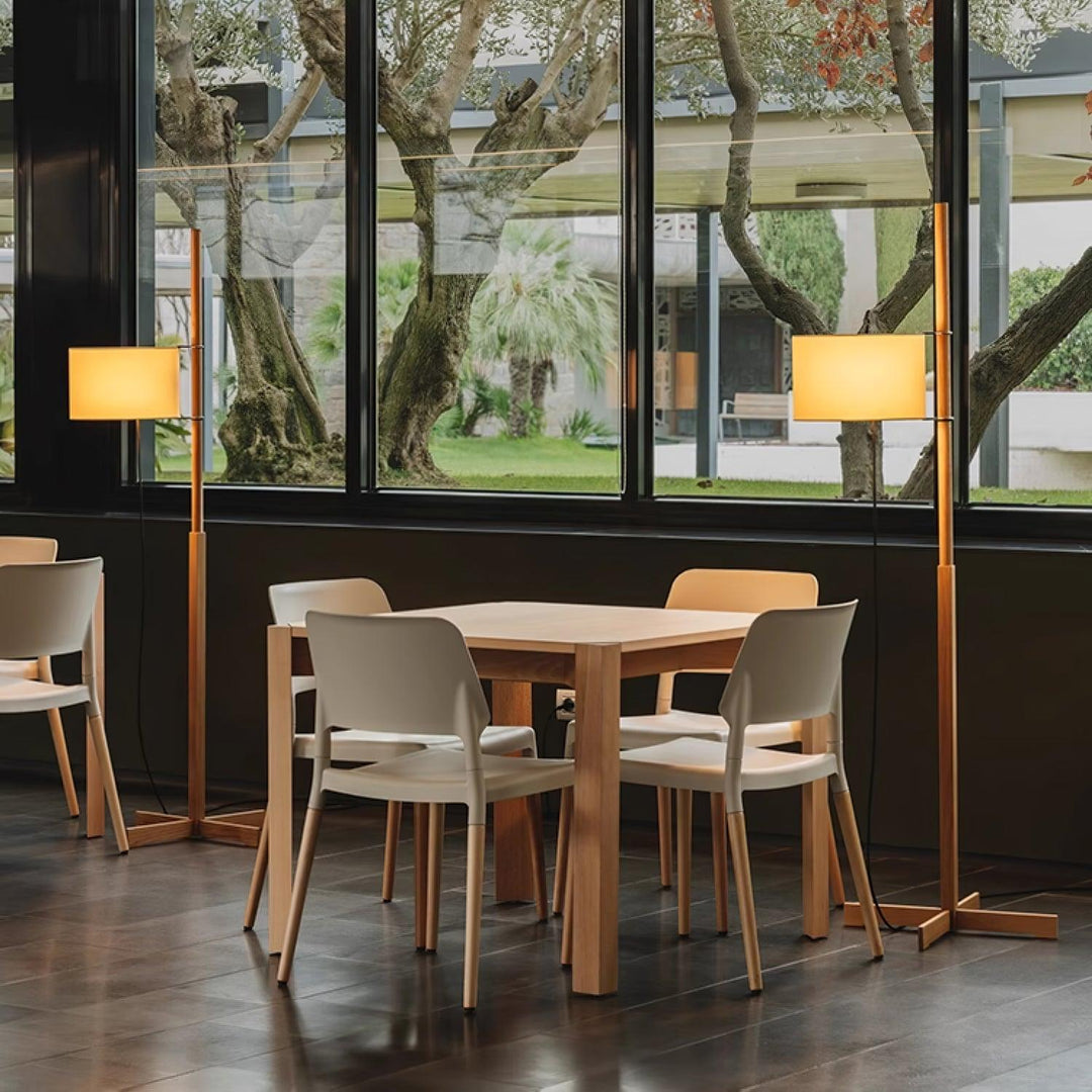 Introducing the Svelte Silhouette Floor Lamp, a fusion of minimalistic design and warm functionality. This elegant floor lamp showcases a svelte stand, available in a lustrous metallic finish for a touch of modernity or a rich wooden texture for a nod to the classic style. The stand’s subtle tapering enhances its height, leading to a tastefully simple fabric shade that softly diffuses light into the room. With its clean lines and understated presence, the lamp’s base forms a delicate “X” shape, providing a stable foundation while maintaining a sense of lightness and openness.