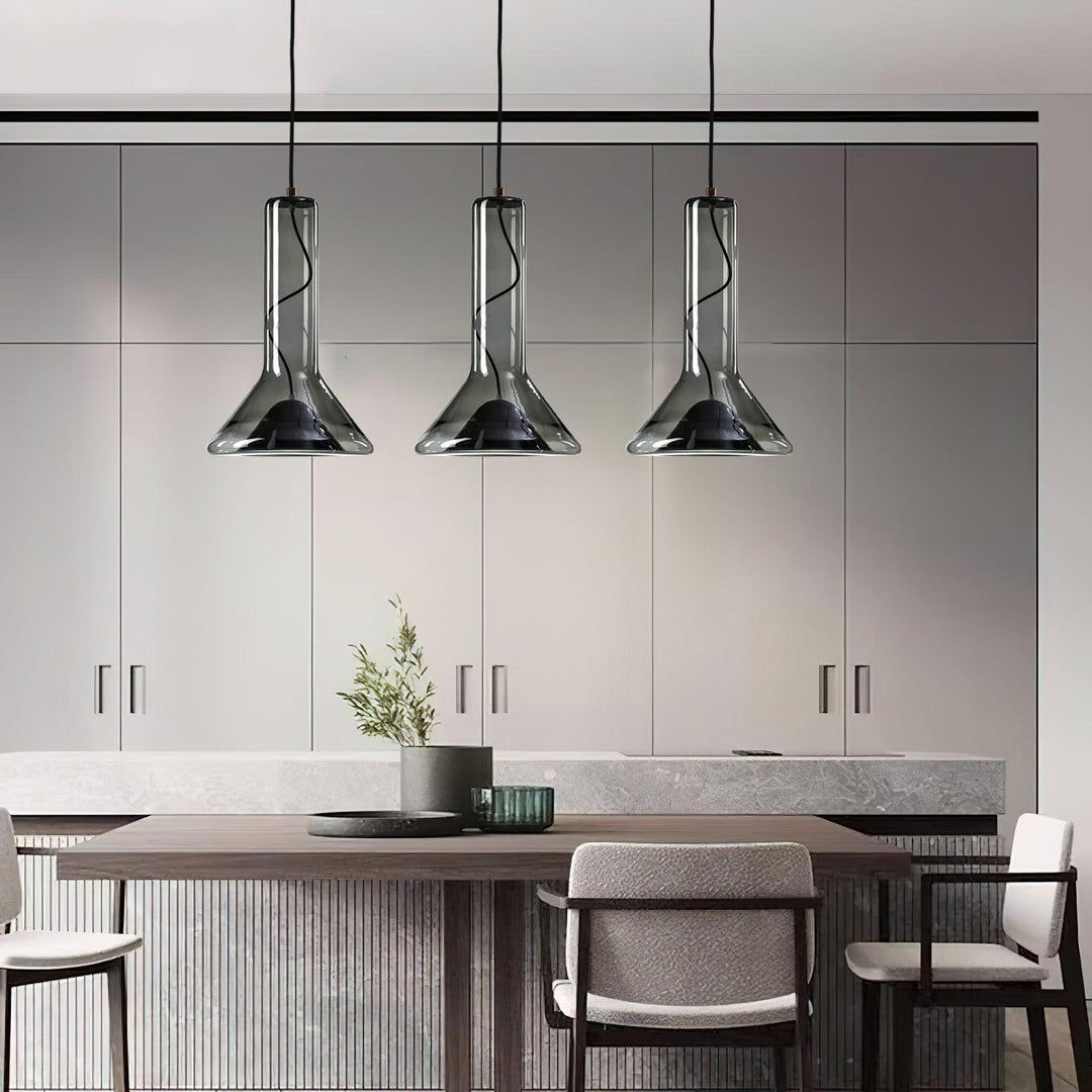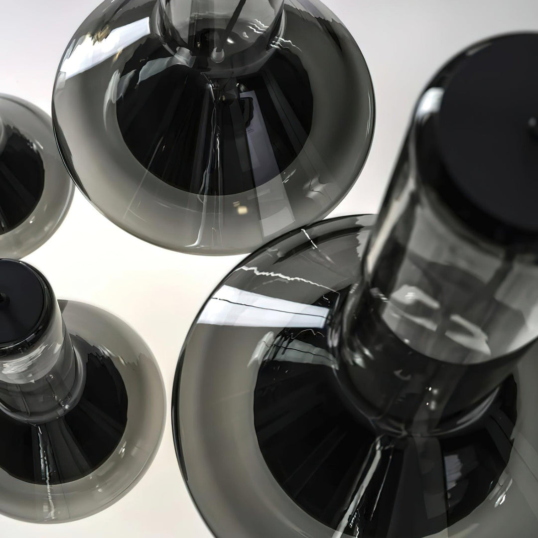 This “Swirl Chandelier” blends fresh and mysterious colors to become the focal point of any space with its unique design aesthetic. Made of high-quality transparent glass, the lamp creates a visual vortex effect with its pure clear light color and deep smoke gray. The elegant chimney shape design and the spiral color contrast inside not only provide a beautiful appearance, but also create a charming light and shadow effect when lit. Whether hung individually or arranged in groups, swirl chandeliers bring a modern and sophisticated touch to any home or commercial space.
