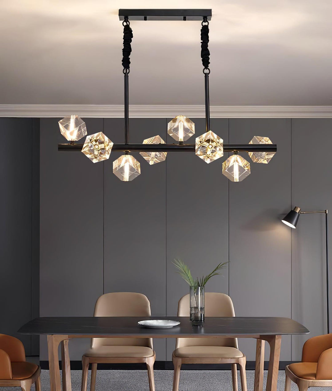 This Takku Crystal Chandelier is the perfect way to add a touch of sophistication and luxuriousness to any space. Beautifully crafted with premium metal and crystal blocks, this chandelier exudes opulence and exclusivity. Its intricate details, fine lines, and subtle glimmering light will bring a sense of artistry to any room.