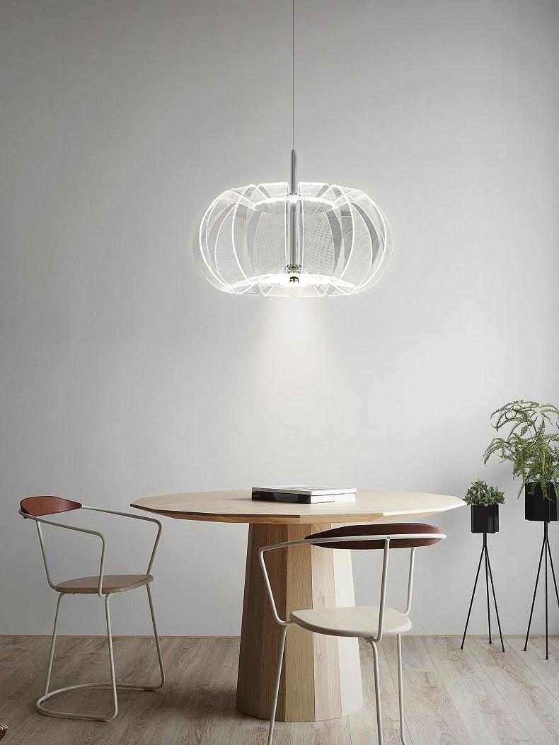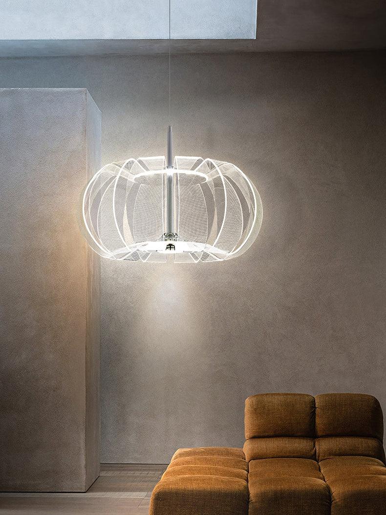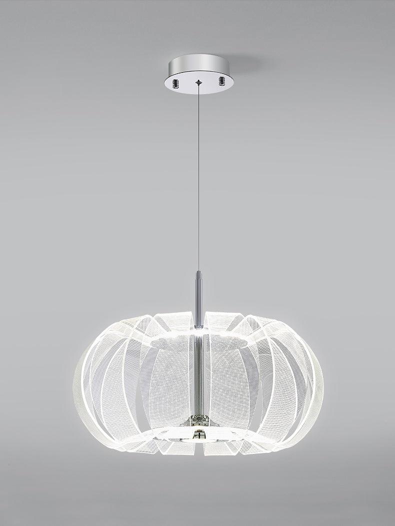 The Timothy Globe Pendant Light introduces spaces to a light and refined quality. The oval-shaped orb is formed from a series of acrylic segments, each one curving to create its bulbous shape. At its center, a slender tube contains its integrated LED light source, which sends a soft and energy-efficient glow through its thin cage to generously fill a room. Lending an open and airy accent while providing long-lasting illumination, this fixture is a welcomed addition in any arrangement.