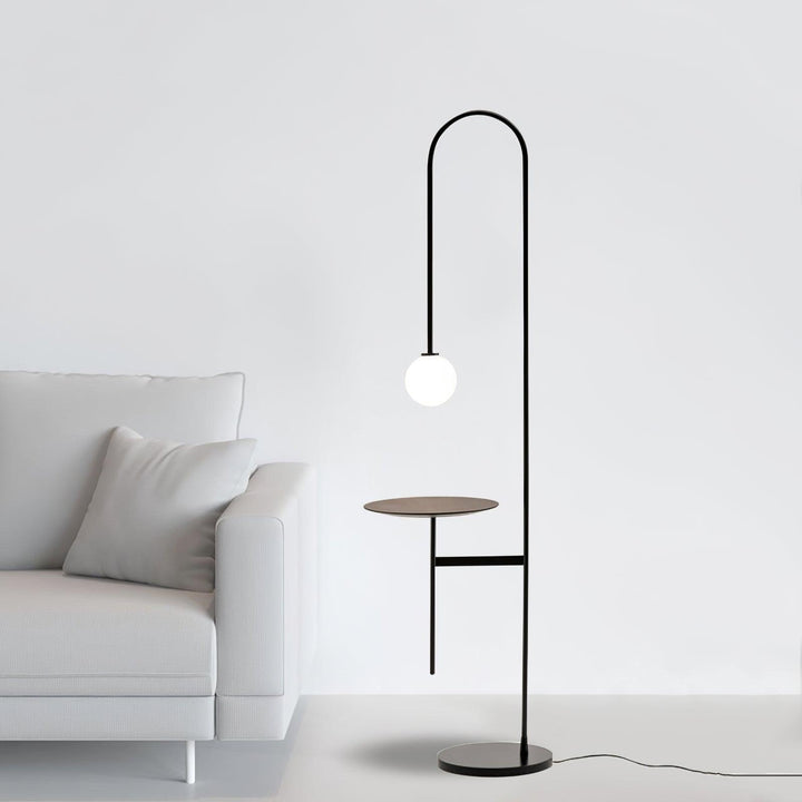 The Vanni floor lamp is the essence of sculpture as form and function. Set upon a round black base the Arnold’s brilliantly designed black frame with glass shade is at once a floor light and circular side table.
