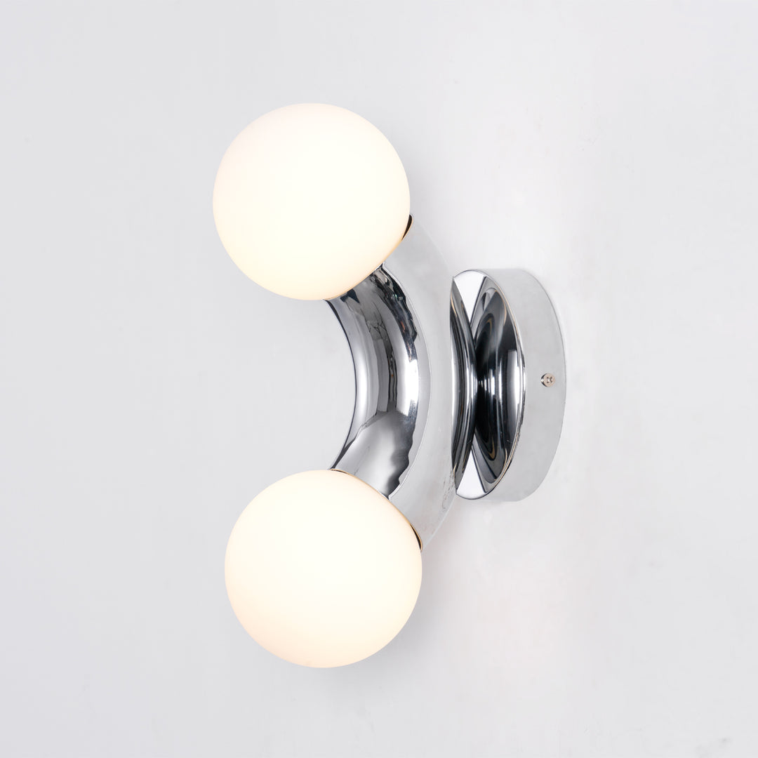 The Vine series introduces exaggerated form with propensity for repetition resulting in a bold impact. Composed of a poised chrome arc flanked by two glowing glass globes—the multiplication of the module enables the fixture to grow, exponentially overstating the fixture’s overall silhouette.