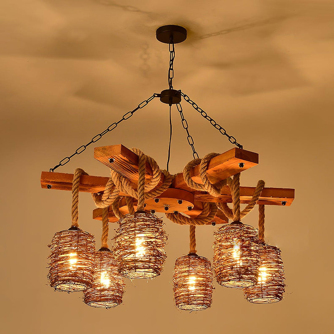 This retro chic chandelier is crafted in rattan lampshade and wood material, which has a unique shape that makes it an eye-catching highlight in your home. and it will provide your home with bright but not harsh light, giving it a warm and homey feel.