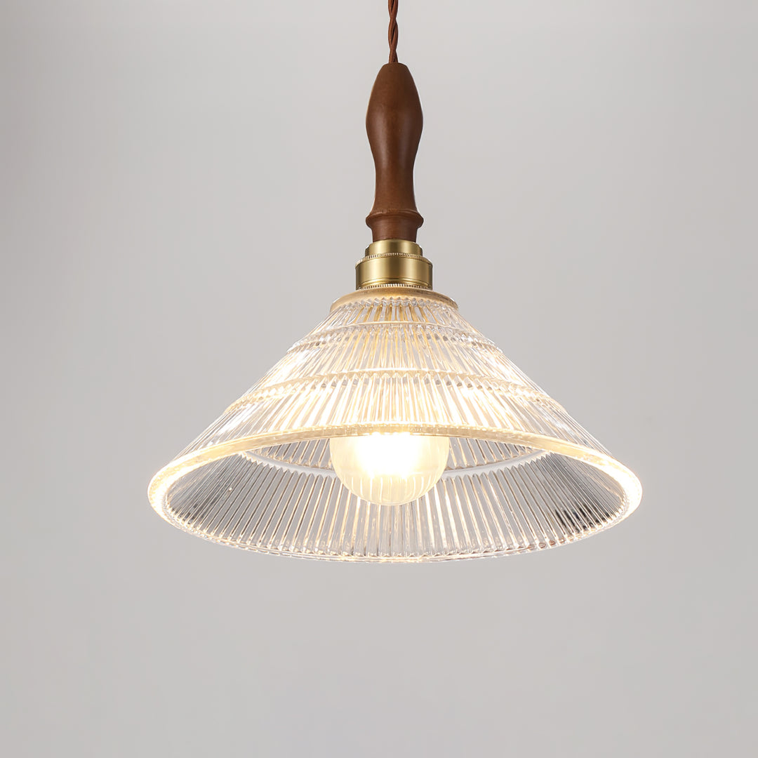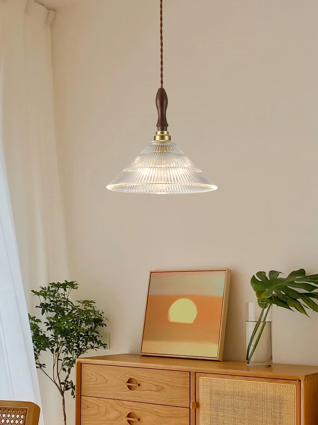 Introducing our Vintage Ripple Pendant Lamp, a perfect fusion of past and present. Featuring a textured glass shade and elegant wood accents, this lamp adds a touch of sophistication to any space. Embrace the fusion of vintage aesthetics and modern craftsmanship with this exclusive piece.