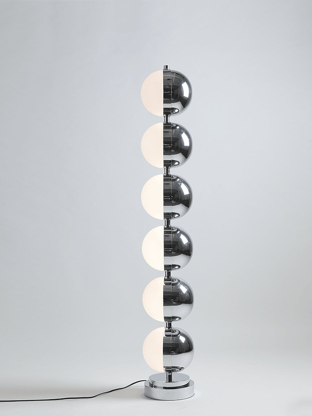 Featuring a polished chrome finish, the lamp’s body reflects light beautifully, adding a touch of glamour to your space. Its clean lines and contemporary silhouette make it a versatile piece that seamlessly complements various décor styles.