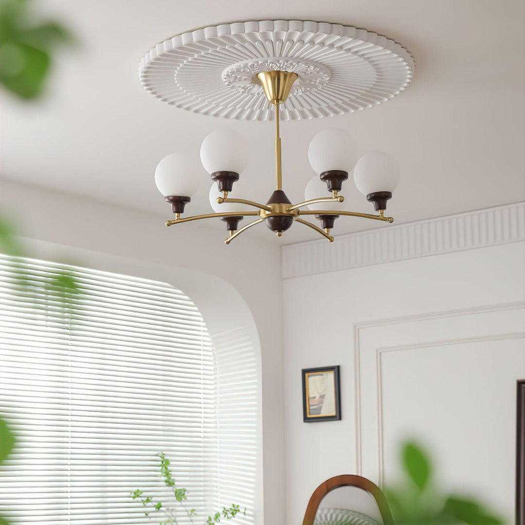 The Walnut Glass Ball Chandelier adds classic elegance to your home. Its walnut frame and glass balls create a timeless, vintage feel, perfect for any room in your house. Designed for modern living, this stylish chandelier will bring sophistication to your decor.