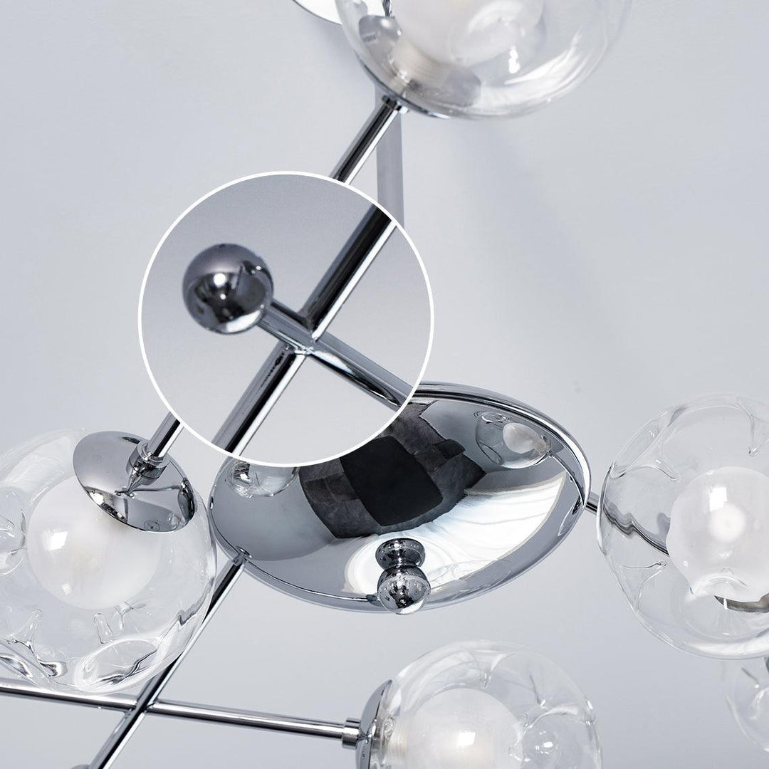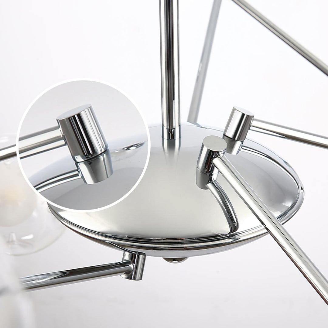 The Westlife Sputnik Chandelier emphasizes fashionable design. The modern Chandelier is a combination of chromed mirrors and clear glass lampshades, This Chandelier is part of our vakkerlight range, it is finished in polished chrome and comes with an elegant, quirky design.