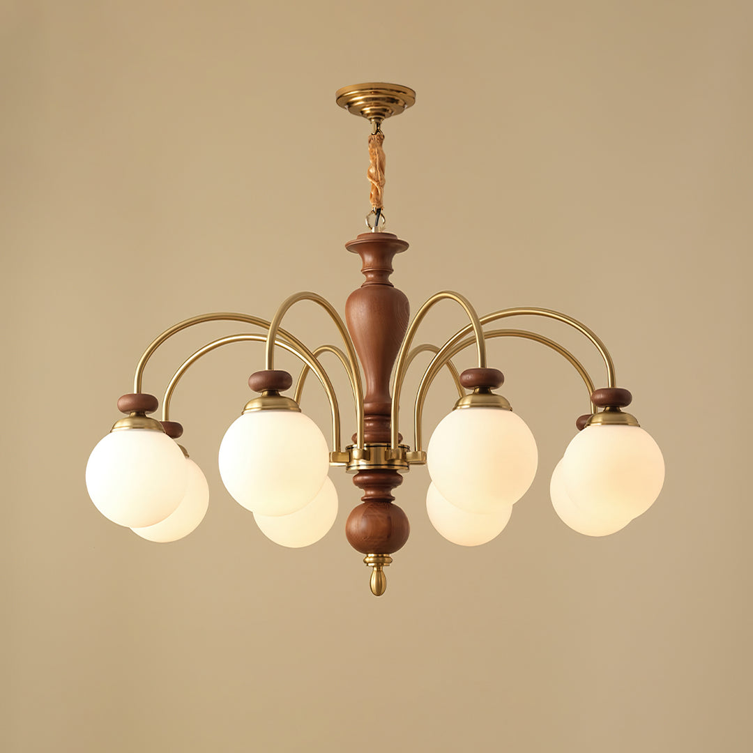 Introducing the Windsor Classic Chandelier, a perfect blend of traditional charm and contemporary features. Adorned with elegant curves, a wooden center column, and brass details, this fixture brings a touch of Victorian allure to any space. The opalescent glass globes offer a gentle glow to create a cozy atmosphere.