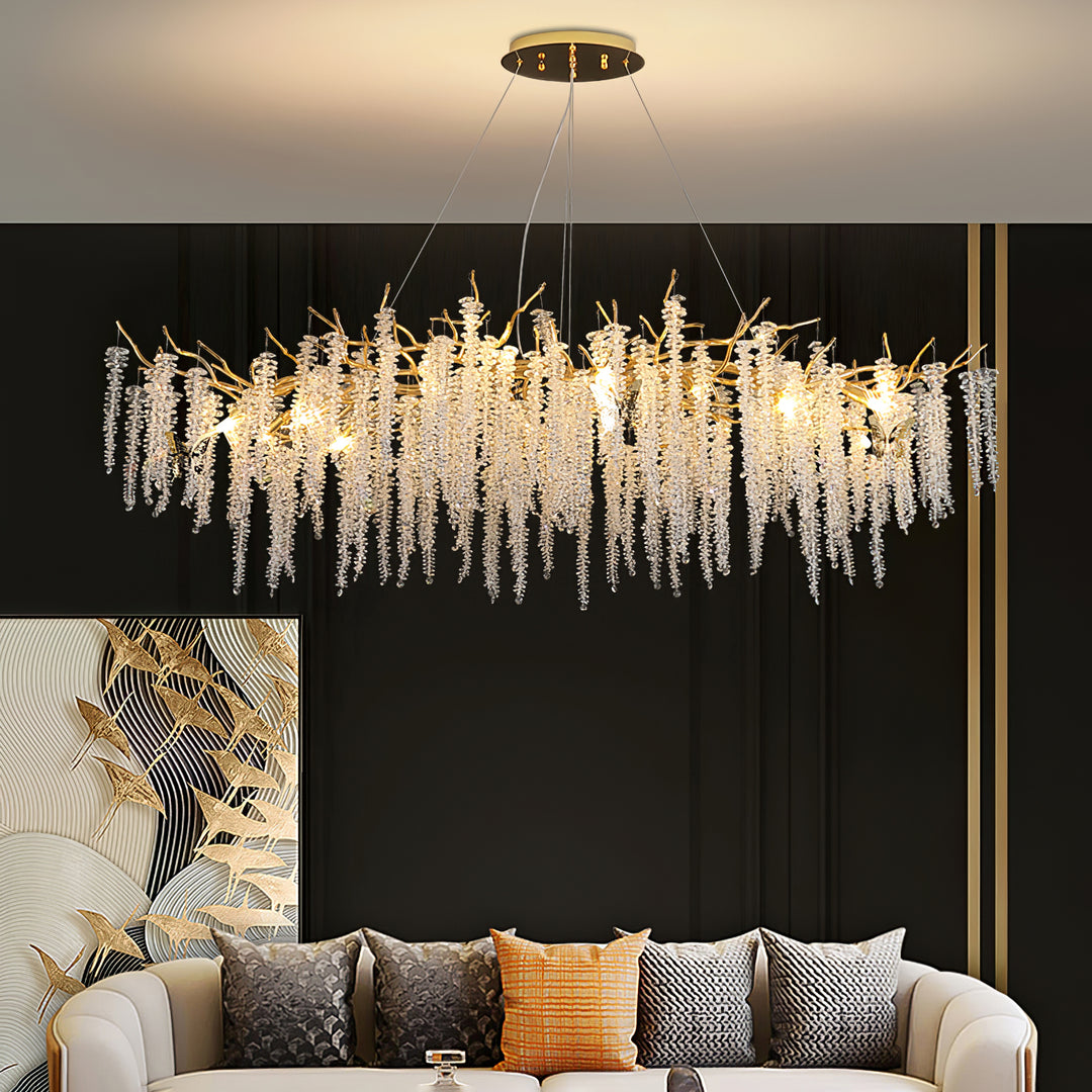 This stunning Wisteria Flower Crystal Chandelier is the perfect finishing touch to add a touch of glamour and sophistication to any room. Featuring a delicate design of finely crafted pistils, each luxuriously designed with a beautiful crystal, this chandelier is sure to bring a sparkle to your home.