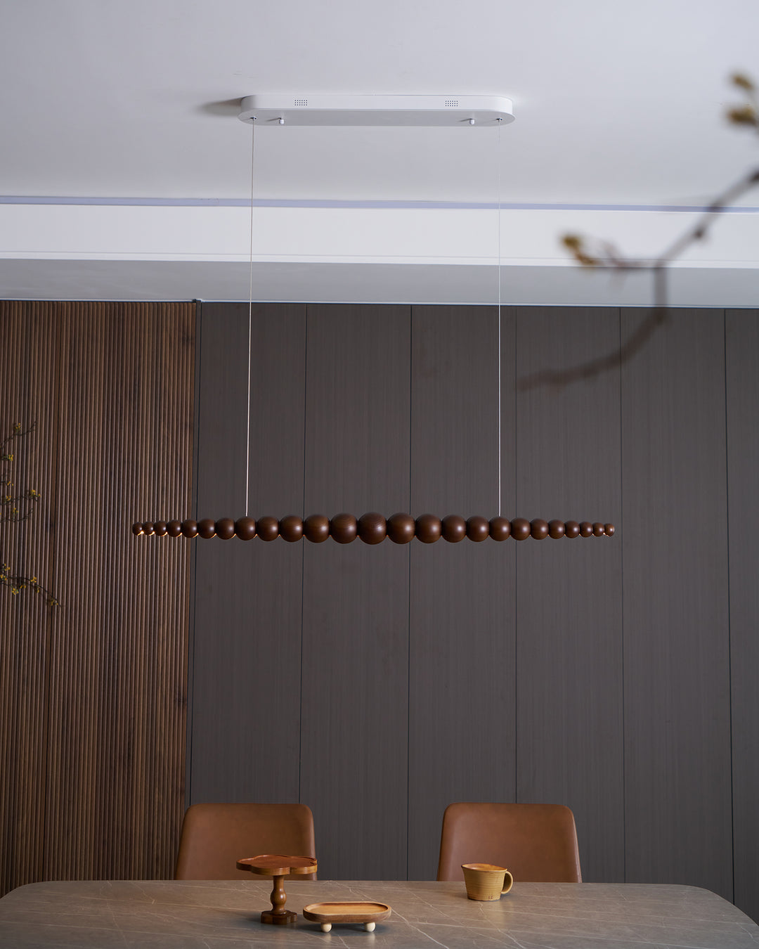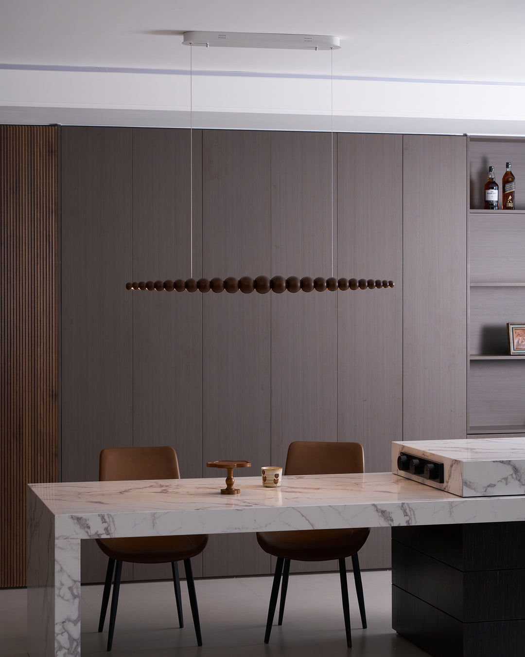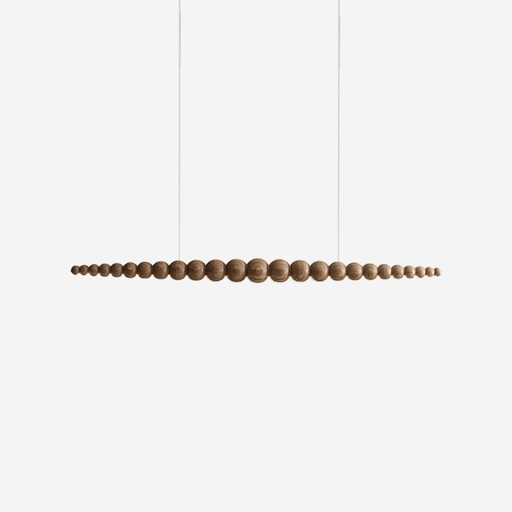 The Woodline Orb Pendant Light is inspired by the natural beauty of wood and the timeless elegance of spherical shapes. This exquisite light fixture features a series of wooden orbs, meticulously arranged in a linear fashion, creating a harmonious and balanced design. The warm, natural wood tones add a touch of organic charm, while the minimalist arrangement provides a modern and sophisticated aesthetic. Perfect for dining areas, kitchens, or living spaces, the Woodline Orb Pendant Light blends the organic with the contemporary, offering both functional illumination and a captivating artistic statement.